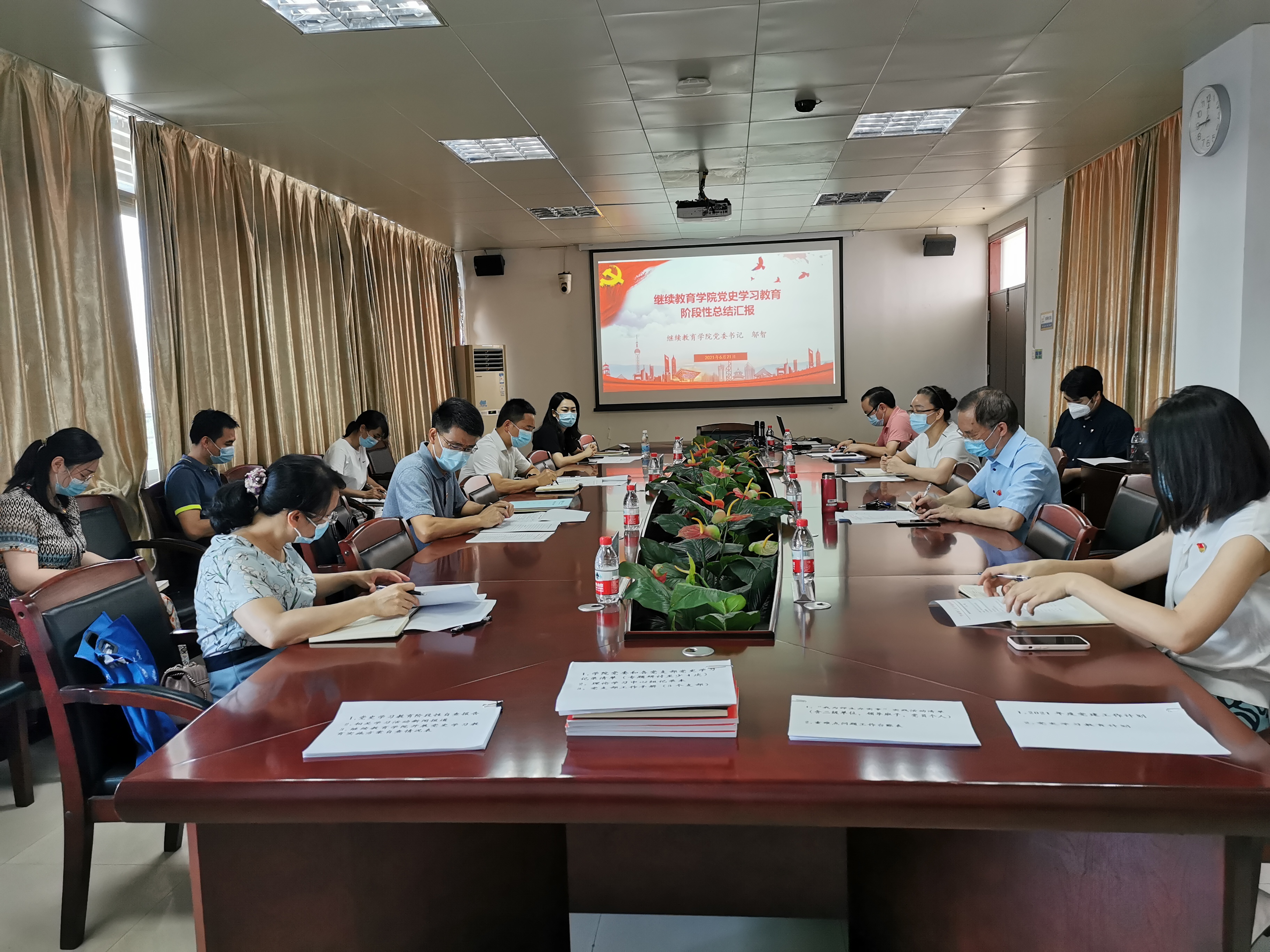 6月21日,根据公司党委的统一部署,公司党史学习教育第六指导组来公司检查党史学习教育工作,指导组组长、体育公司党委书记梁大为,副组长、后勤处副处长金朝霞,秘书、发展战略与规划处科长梁锦霞,联络员、材料科学与工程公司副科长李楠,公司党委书记邬智、教工党支部书记及委员等参加了检查汇报会。