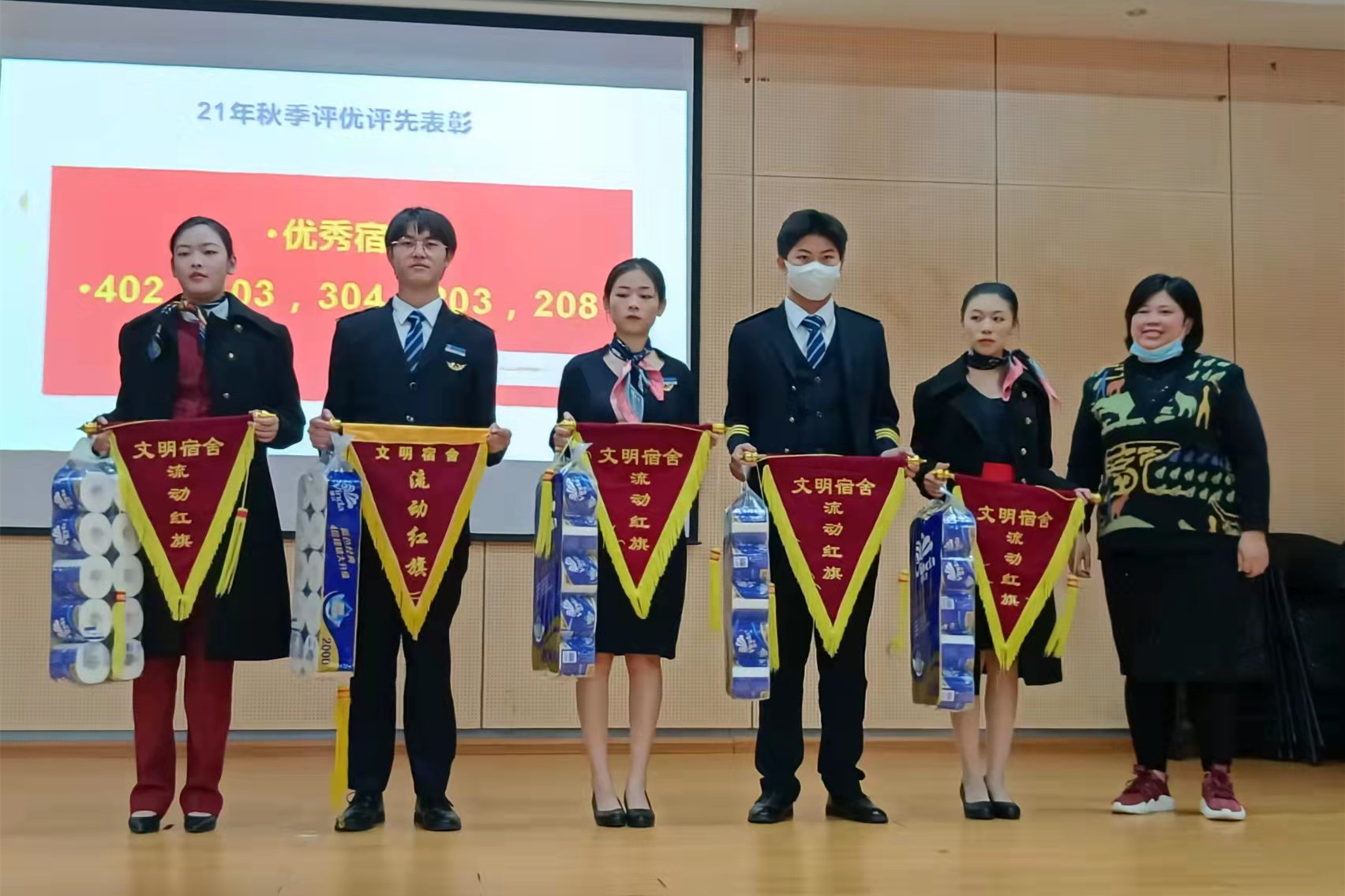 颁授活动中,员工们还表演了T台秀、舞蹈等节目,充分展示了航空学子的青春风采。同时,对本专业2021年度优秀员工、优秀员工干部和文明宿舍等进行了表彰。授装仪式后,学员代表表示作为一名航空学子,穿上航空制服代表了新的起点,更要脚踏实地、全力以赴追逐航空梦想。