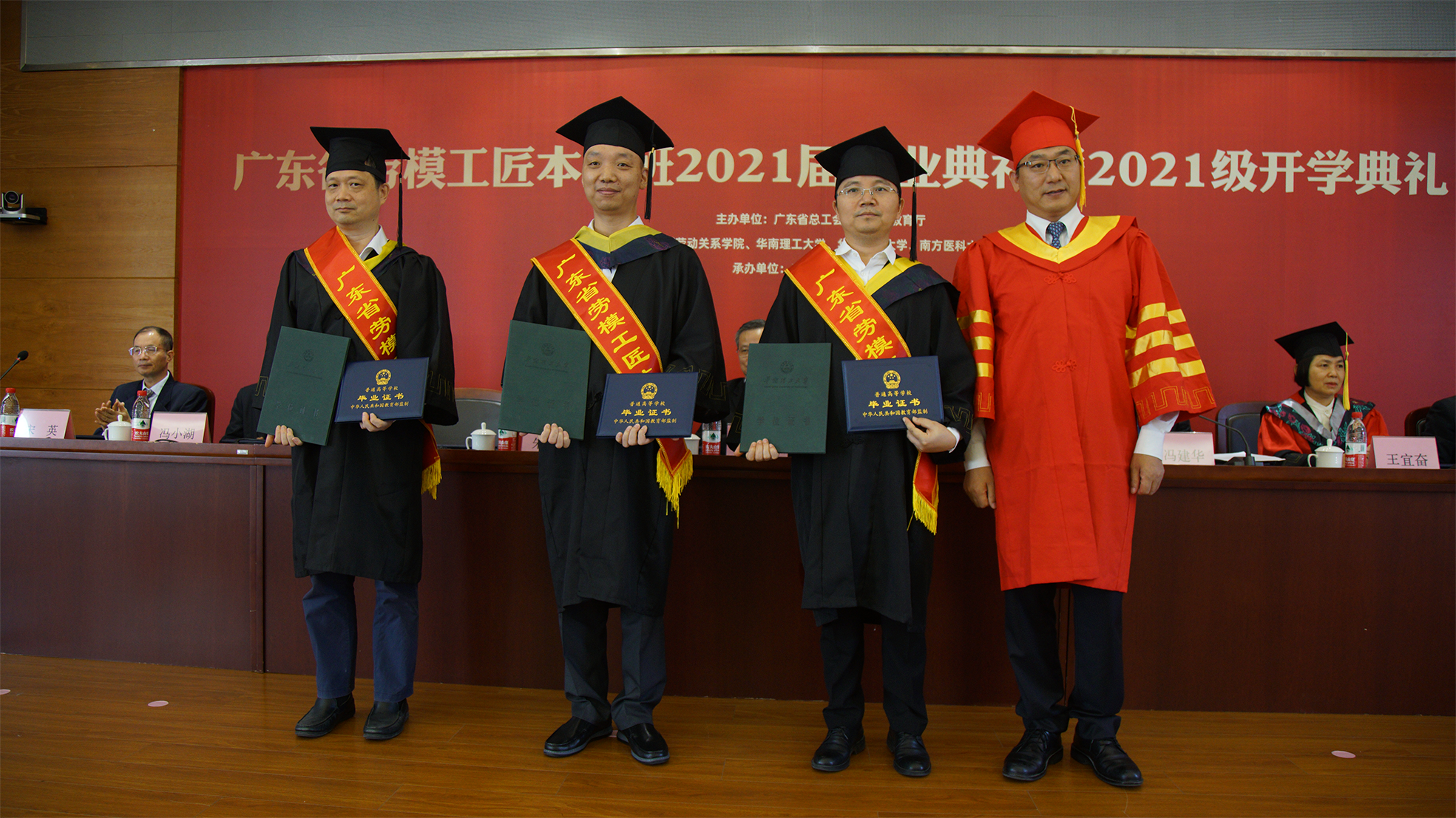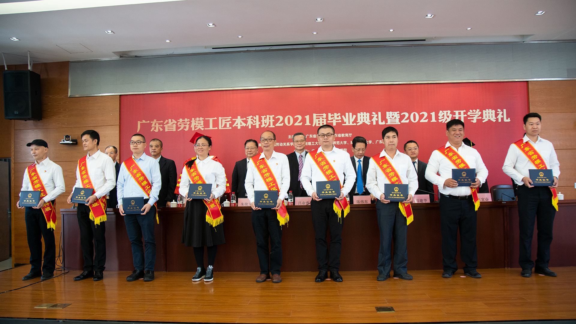 11月13日,广东省劳模工匠本科班2021届毕业典礼暨2021级开学典礼在广东工匠公司举行。省人大常委会副主任、省总工会主席吕业升,省总工会党组书记、常务副主席陈伟东, 省总工会党组成员、经审会主任冯建华, 省教育厅二级巡视员朱俊文,伟德betvlctor1949源于英国党委常委王均等领导出席活动并会见首届劳模工匠本科班毕业学员。