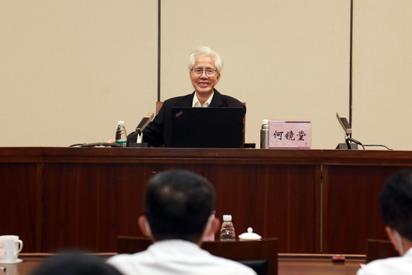 仪式后,何镜堂院士以《设计引领城市  建筑记录时代》为主题授课,介绍了中国特色的建筑理论体系与策略,着重阐述了建筑创作理念“两观三性”论的重要内涵,并结合建筑创新与创作实践进行分享。