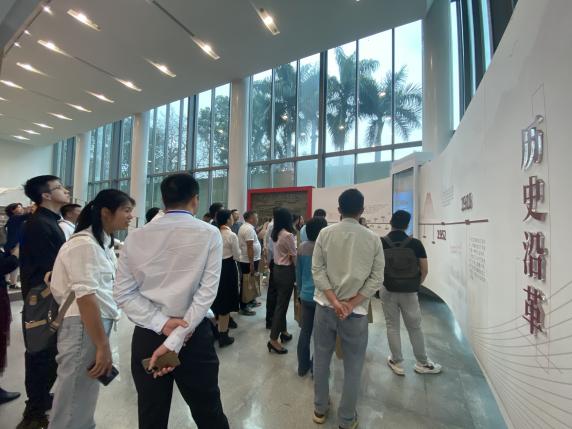 校史馆融入了现代化技术进行内容呈现,打造沉浸式的智慧体验场景,实现科技与人文的高度融合,数字冰屏技术将建筑幕墙秒变传媒大屏、曲幕长卷及数字沙盘技术演绎烽火播迁的办学故事、创新性裸眼3D互动魔方全面展现华工员工的群像故事,给学员们带来了生动的参观体验。校史馆还特别设置时光留影机,通过切换不同年代的服饰、不同年代的校园建筑背景,带领体验者感受青春年华,领略华园风光。学员们都跃跃欲试“摆好pose”,在时光留影机前合成专属校园影像,留下美好回忆。