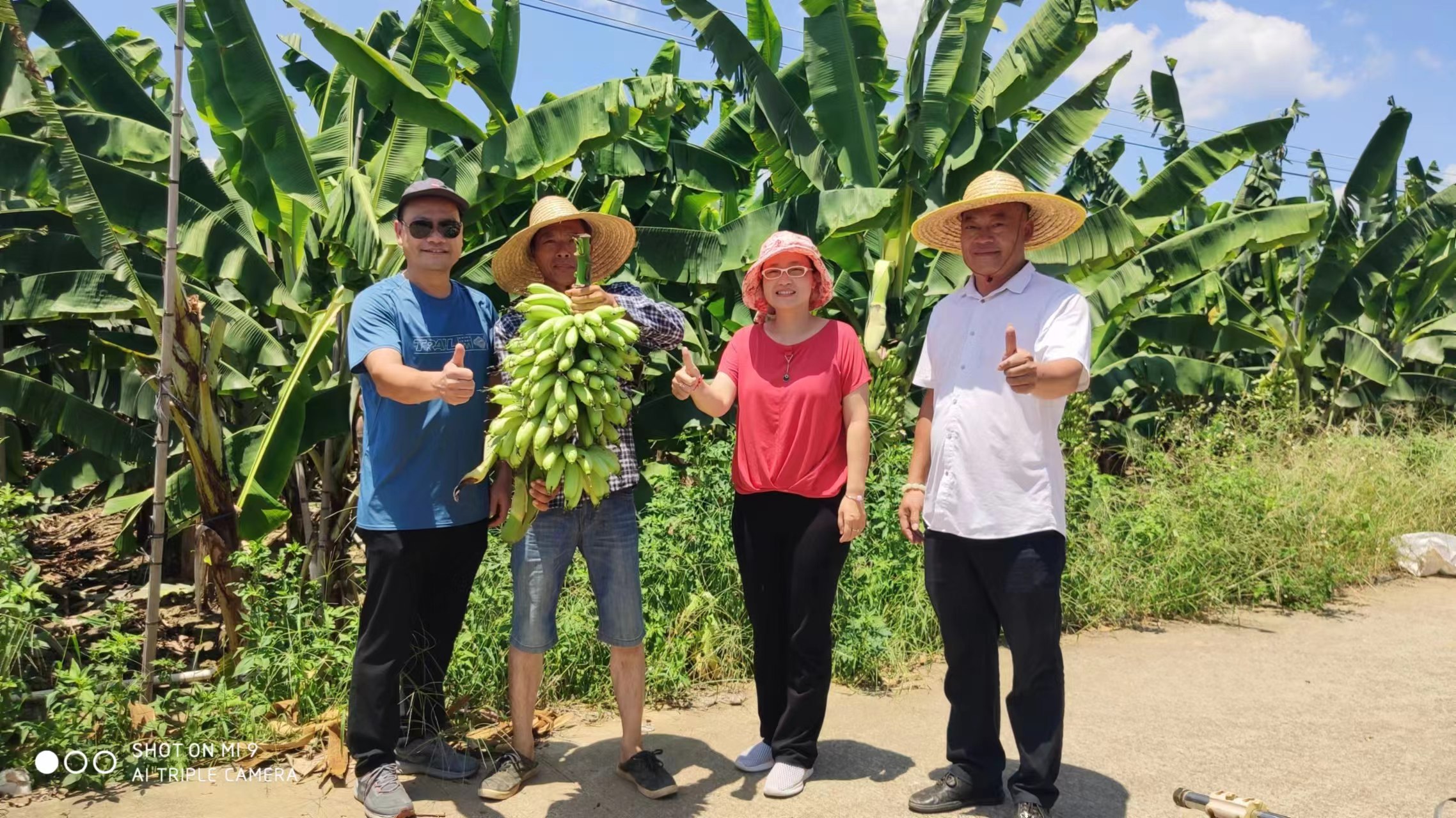 11日,王娟老师与广东省华侨农场农业科学研究所负责人、副所长陈正及“头雁”学员梁永雄赴肇庆市封开县平凤镇考察当地的香蕉种植情况。在平凤镇政府会议室,镇党委书记刘守威介绍了该镇香蕉的种植品种、面积、产量、品质和面临的问题等情况。王老师给出了建立香蕉区域公共品牌、明确本地香蕉的特色和价值、丰富支撑数据等建议。梁学员就香蕉枯萎病、黄叶病的防治提出了建议。会后,一行人实地测量了香蕉种植土壤的酸碱度、查看病害情况。