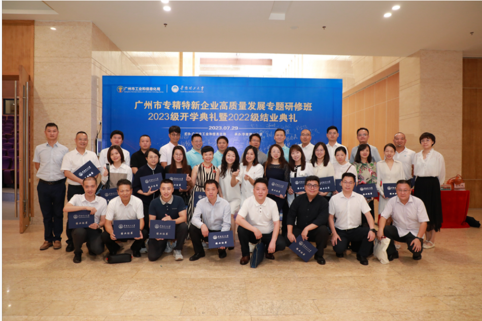 7月29日,广州市专精特新企业高质量发展专题研修班2023级开学典礼暨2022级结业典礼在公司顺利举办。广州市工业和信息化局二级巡视员叶华东、中小企业处处长申永红、中小企业处副处长赵强、中小企业处张良、中小企业处调研员麦洪辉,www.betvlctor1946.com(大湾区培训公司)党委书记叶伟雄出席活动,广州市专精特新各企业高管60名学员参加本次培训。