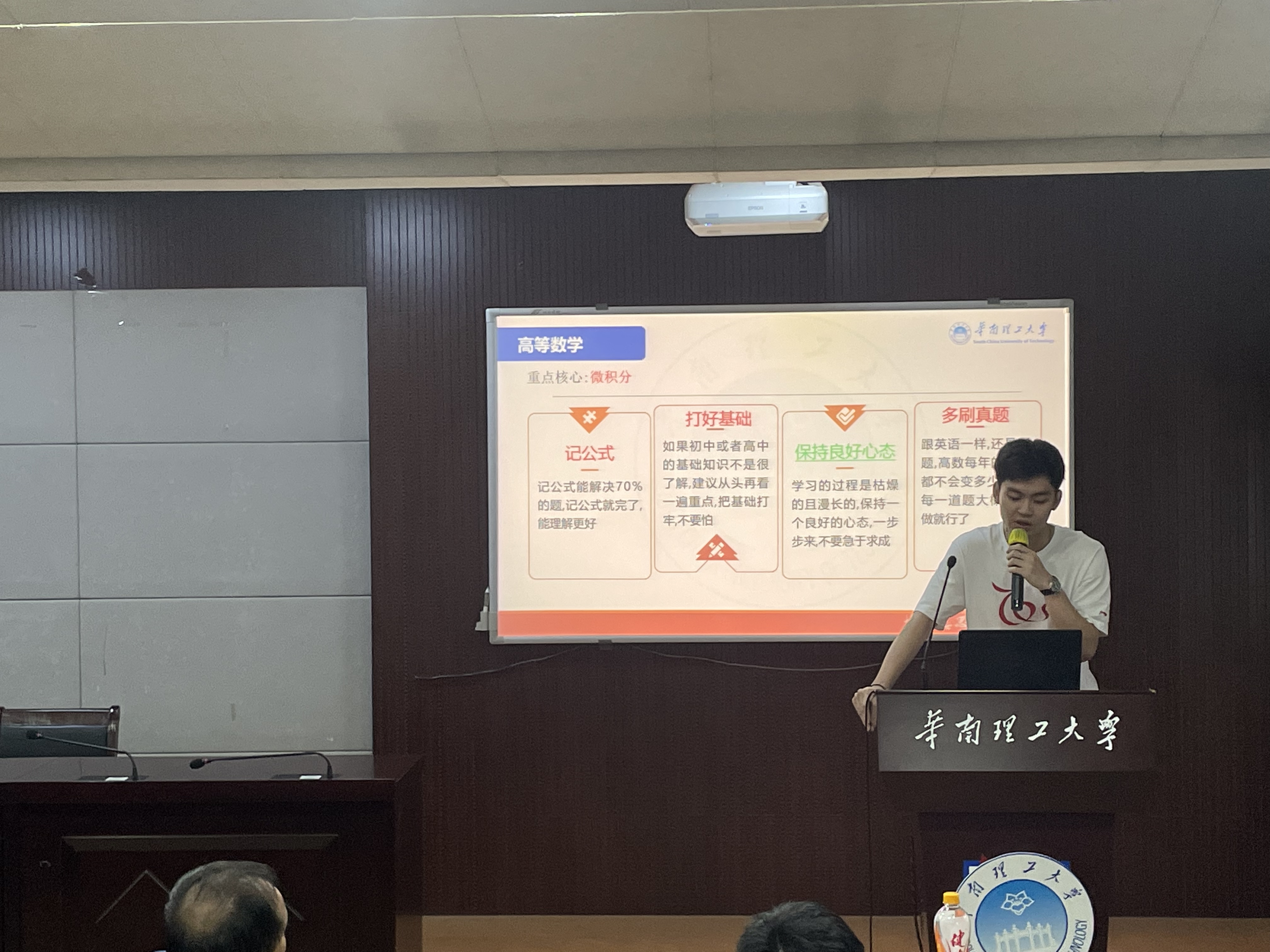 分享会上,杨岚、张艺养同学从四个方面分享了自己的学习经验:一是要清晰课程考试安排,提前做好规划;二是善于利用网络学习资源,有效补充课堂学习;三是与同学相互鼓励学习、共同进步;四是坚持自律学习,多去图书馆自习室复习。另外,他们还特别分享了《英语》《高等数学》课程学习方法。