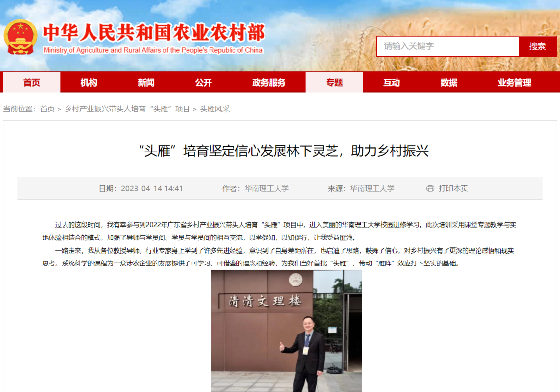 培训教学和服务受到农业农村部等官网和媒体的关注,得到用户写来感谢信高度认可。