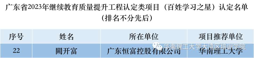 8月7日,广东省教育厅公布《关于2023年继续教育质量提升工程认定类项目认定结果的通知》,公司两个项目的成功入选“终身学习品牌项目”“百姓学习之星”。
