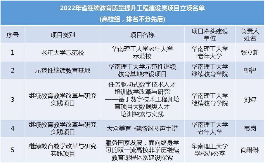 5月29日,广东省教育厅公布2022年省继续教育质量提升工程建设类项目立项名单,伟德betvlctor1949源于英国示范性继续教育基地等5个项目获得立项。