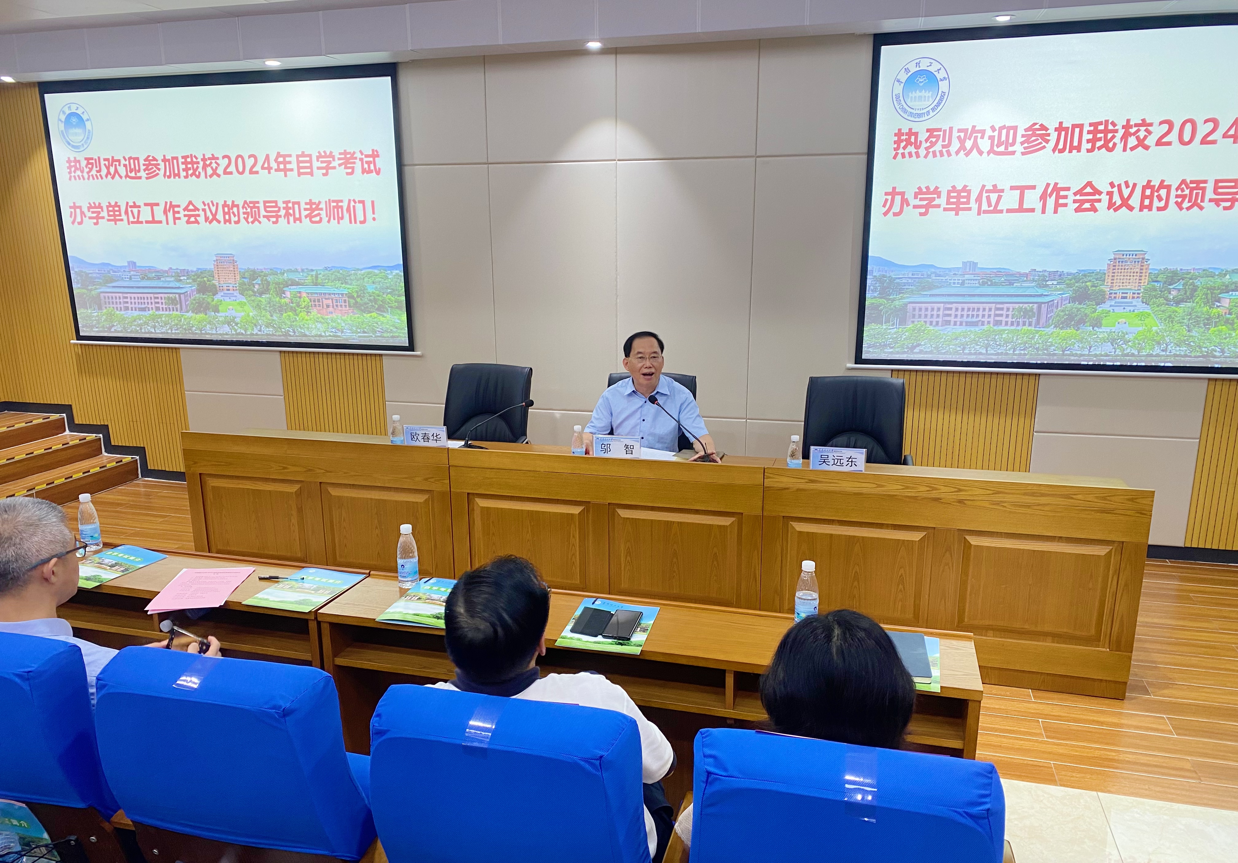 邬智在致辞中对各办学单位负责人和老师等们的到来表示欢迎,并深入介绍了公司办学历史、学科优势、人才培养特色及发展成就。他表示,近年来,公司工作重心由学历继续教育向非学历继续教育转型,大力发展高端培训,取得良好的成效;在各办学单位的大力支持与配合下,公司自学考试工作成绩出色,获得部省考试院领导和业界同行的广泛认可。他还传达了公司关于自学考试政策调整的有关精神,要求各合作(办学)单位严格落实上级教育行政部门的政策要求以及公司的决定,进一步规范办学行为,着力加强员工教育、管理和服务工作,确保自学考试办学安全和平稳收尾。
