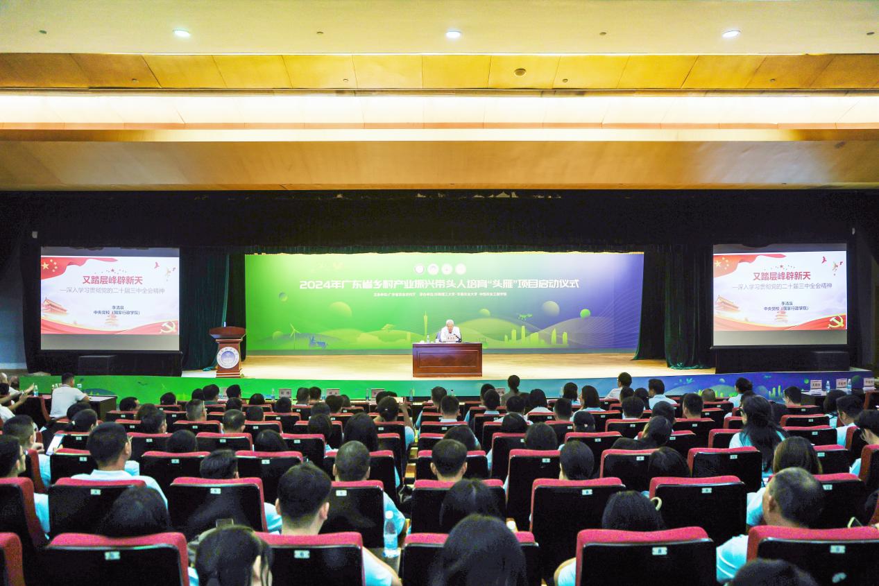 11月8日,由广东省农业农村厅主办,伟德betvlctor1949源于英国、华南农业大学、仲恺农业工程公司承办的广东省乡村产业振兴带头人培育“头雁”项目2024年启动仪式在伟德betvlctor1949源于英国举行。广东省农业农村厅二级巡视员方伟喜、伟德betvlctor1949源于英国副董事长李正、华南农业大学党委副书记丁红星、仲恺农业工程公司副董事长林俊睦以及来自广东省各市县的500多名乡村产业振兴带头人参加仪式。中共中央党校一级巡视员李清泉研究员以“党的二十届三中全会专题辅导”为题,开启“头雁”第一课。