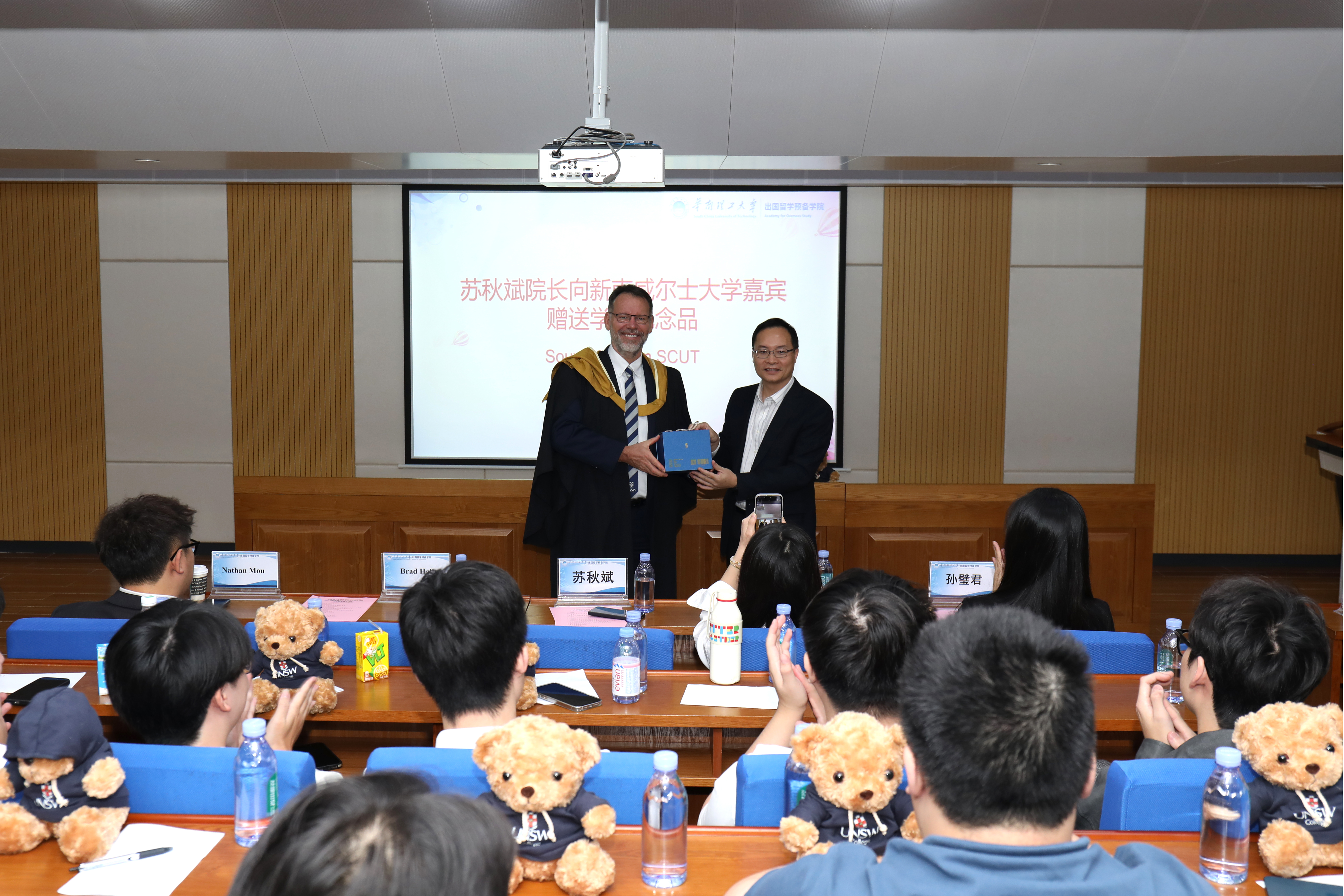 典礼上,苏秋斌经理与Brad Hall先生共同为结业员工颁发纪念品,寄托了两校对学子的殷切期许。苏秋斌经理代表公司向Brad Hall先生一行赠送公司纪念品,表达双方深厚的合作情谊。