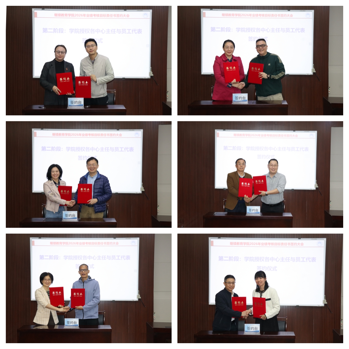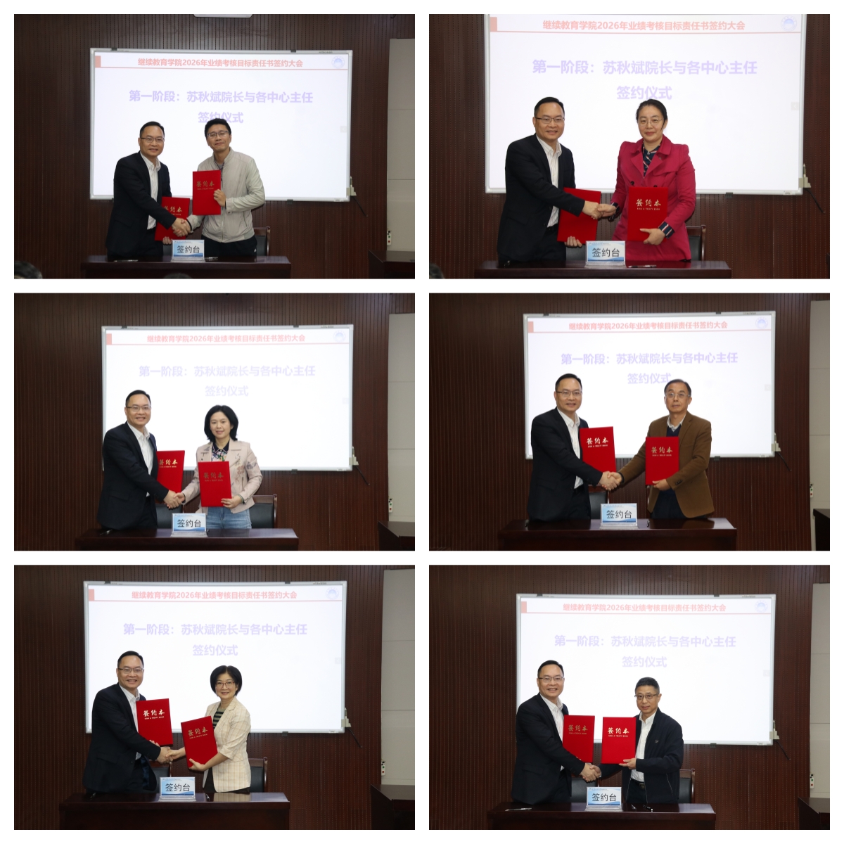 会上,公司经理苏秋斌依次与高级培训中心、出国留学培训中心、自考助学培训中心(学历教育管理中心)、专业技术培训中心、信息技术服务中心及公司办公室的负责人签订《2026年业绩考核目标责任书》。