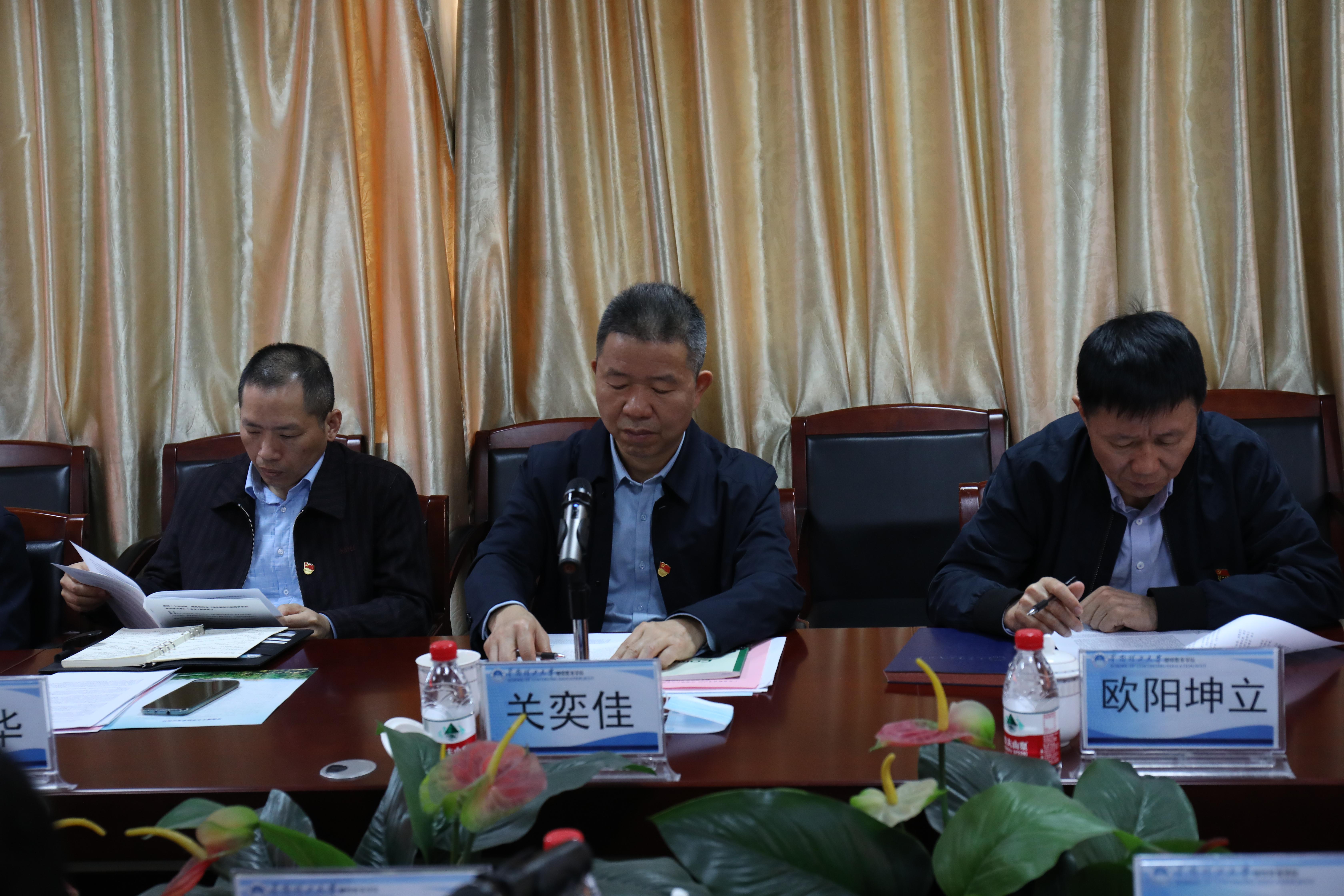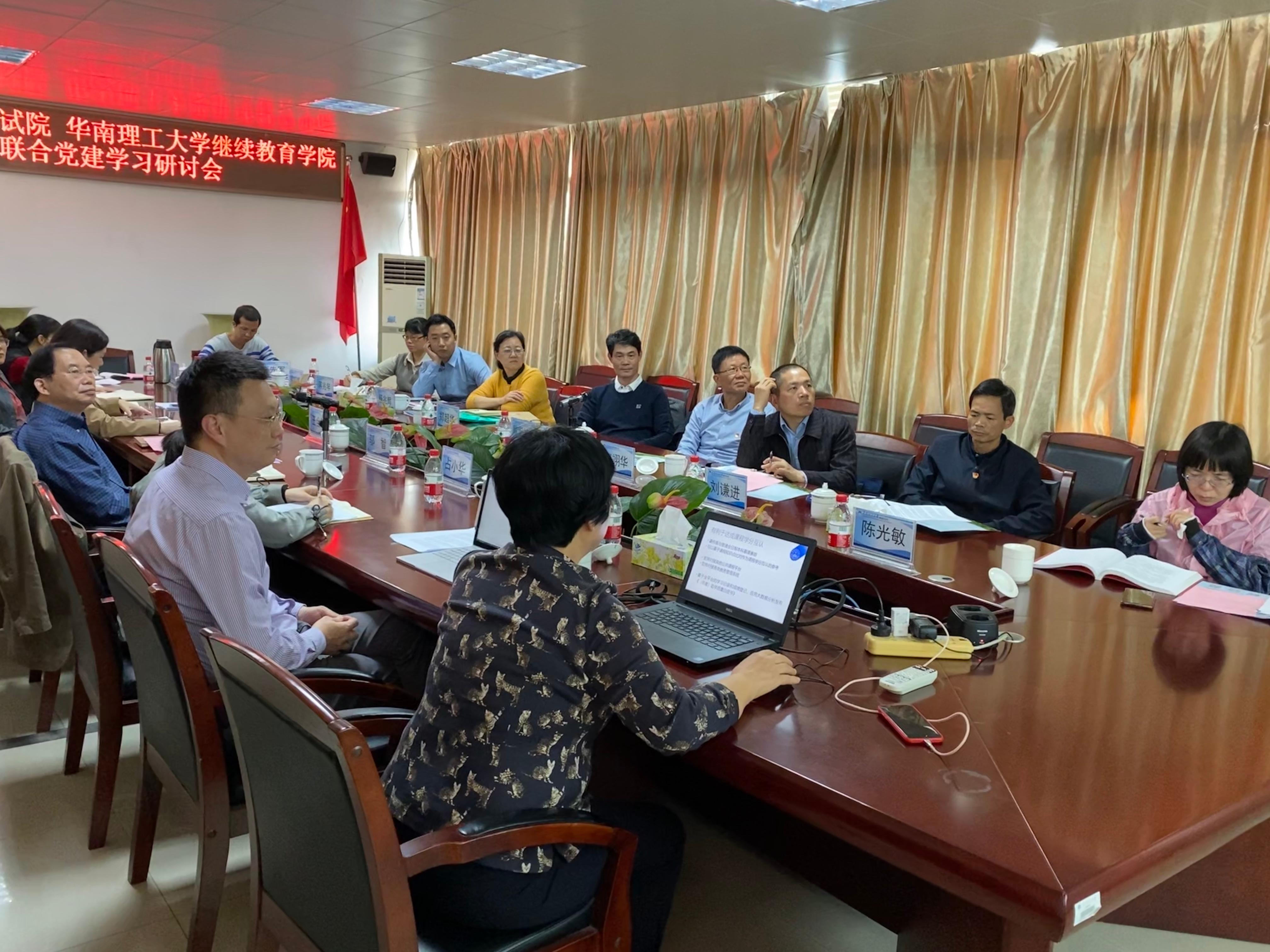 12月28日,由广东省教育考试院纪委副书记关奕佳带队,自考处处长欧阳坤立,自考处副处长廖翊华、杨兆辉等一行9人莅临公司,联合开展党建学习研讨。会议由公司党委书记邬智主持,广东省教育考试院自考处党支部全体党员,公司部分党员副经理、教工党支部书记、党员代表参加联合党建学习会议,民革华工主委、公司副经理王全迪列席学习会议。