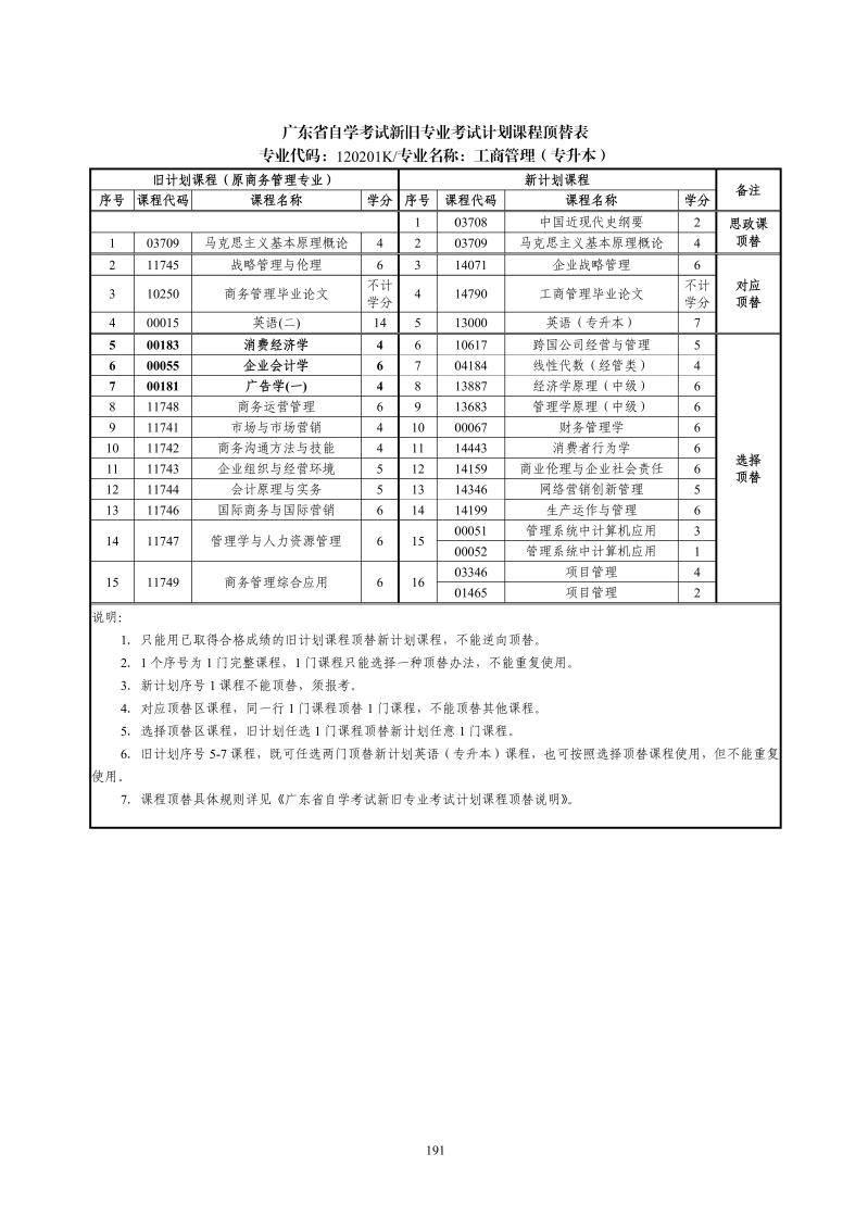 工商管理(专业代码:120201K)【原C020226商务管理(本科段)】考试计划简表