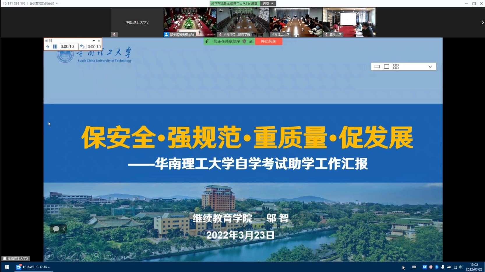 2022年3月23日,广东省教育考试院组织召开自学考试主考公司助学工作视频会议。全省30多所主考公司150多人参加会议。公司副董事长李正出席会议,公司经理邬智、副经理王全迪及自考助学培训中心全体工作人员参加了会议。