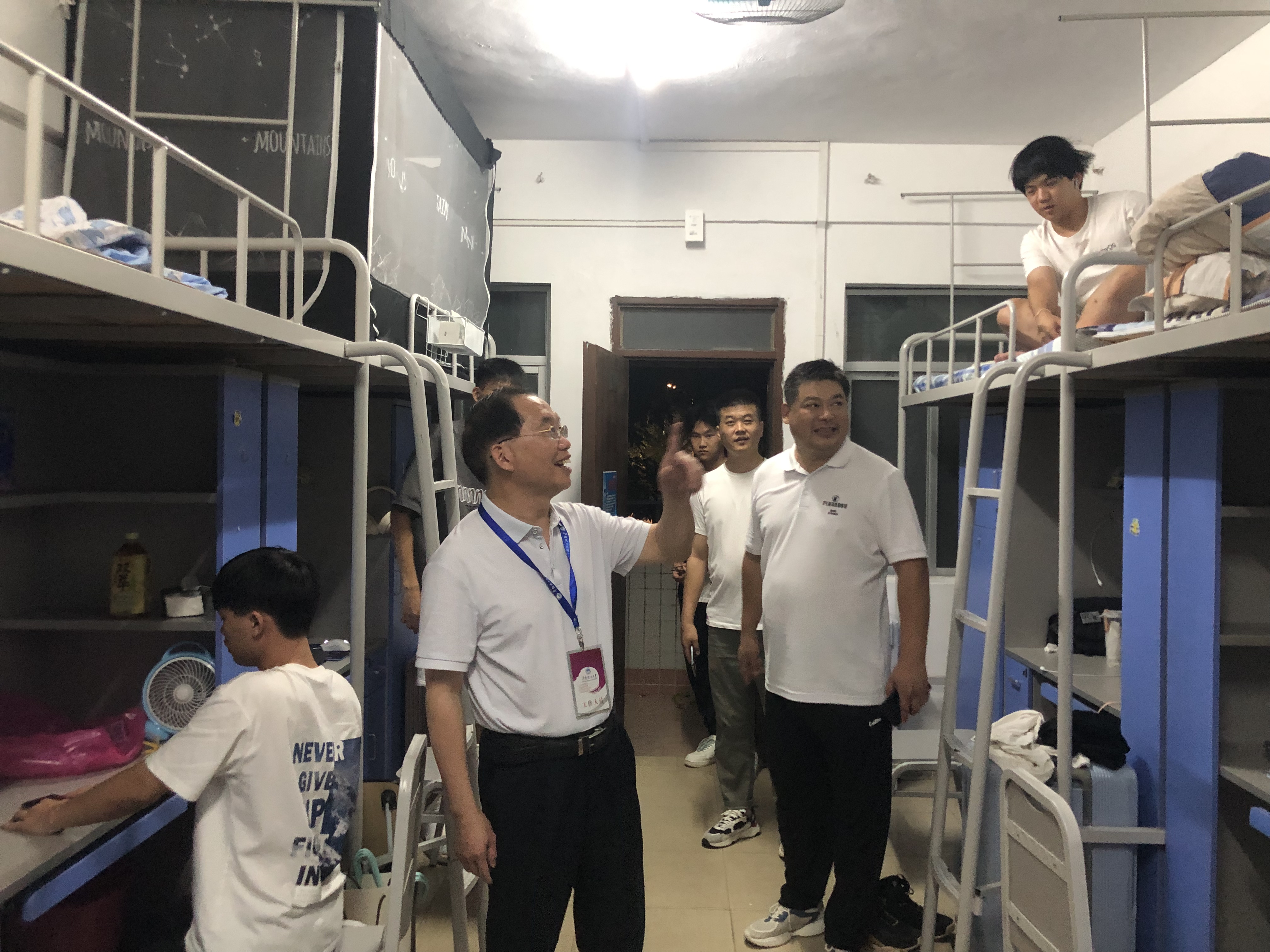 公司领导高度重视新生开学入校工作。上午,公司经理邬智来到迎新现场,了解迎新工作动态并和前来报到的新生及家长交流。晚上邬经理、自考培训中心负责人、学工及辅导员老师们一起走访员工宿舍,了解员工入住适应情况、听取他们反馈的意见,走访宿舍后负责老师立即召开现场会,针对员工反馈的问题提出解决方案,努力为同学们营造一个温馨的生活环境和良好的学习氛围。